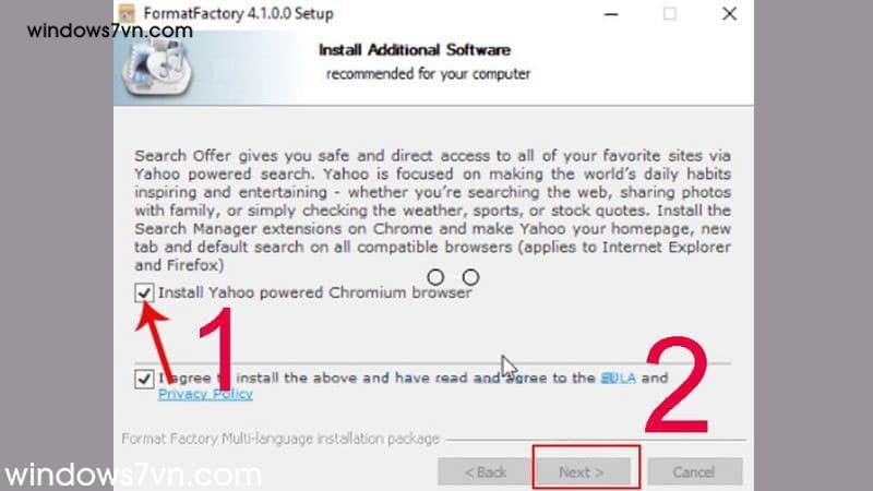 Bước 6 : Format Factory sẽ đề nghị bạn cài đặt thêm phần mềm diệt virus McAfee WebAdvisor. Bạn có thể chọn “Accept” để đồng ý cài đặt hoặc “Decline” để từ chối.