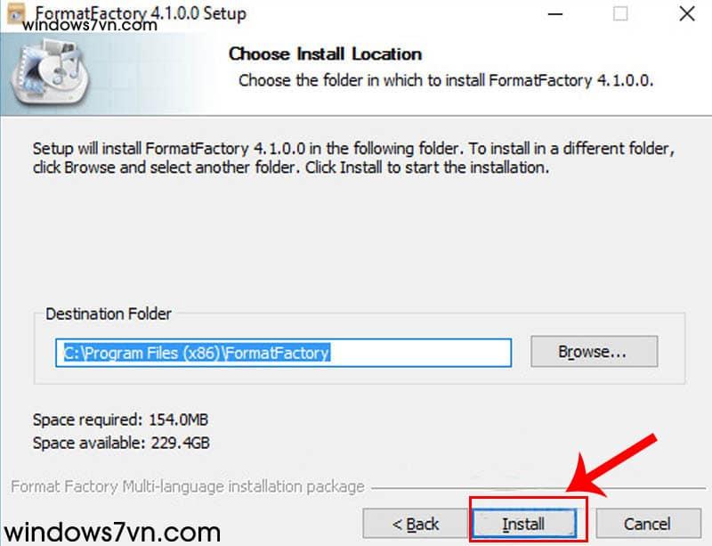 Bước 5 : Chọn thư mục mà bạn muốn cài đặt Format Factory, sau đó nhấn “Next” để tiếp tục.