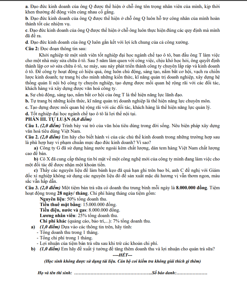 Đề cuối học kì 1 GD KT PL 11 năm 2024 – 2025 trường THPT Bình Chiểu – TP HCM