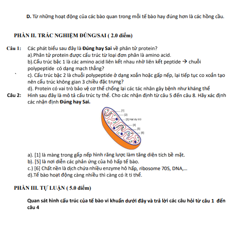 Đề cuối học kì 1 Sinh học 10 năm 2024 – 2025 trường THPT Bình Chiểu – TP HCM