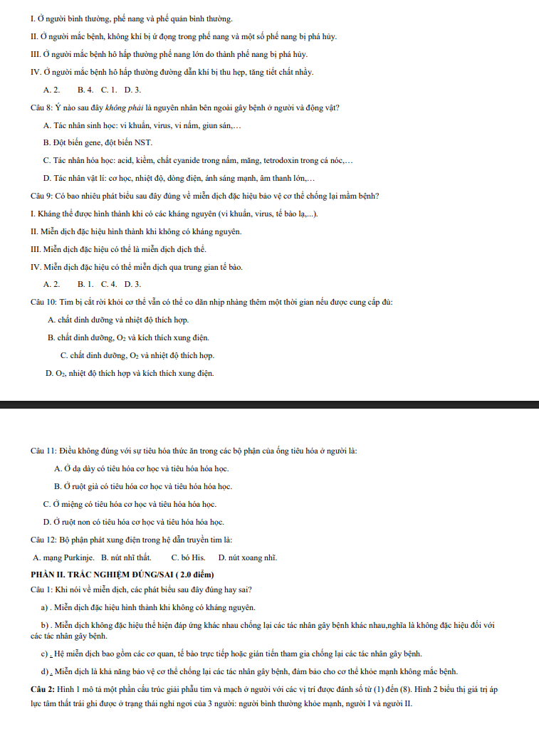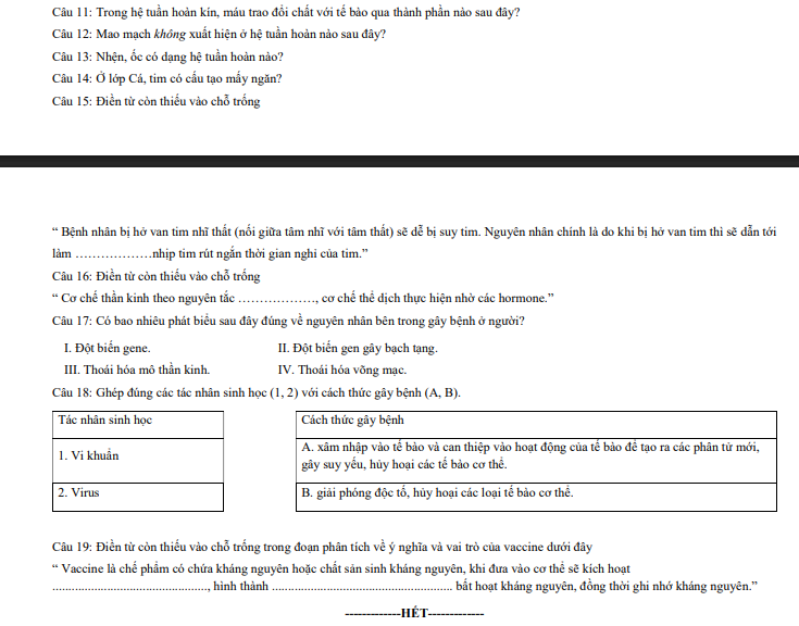 Đề cuối học kì 1 Sinh học 11 được thiết kế với cấu trúc rõ ràng, hệ thống câu hỏi phân hóa hợp lý từ mức độ nhận biết, thông hiểu đến vận dụng, giúp học sinh làm quen với hình thức kiểm tra cuối kỳ chính thức của nhà trường. Khi luyện tập trên detracnghiem.edu.vn, học sinh có thể làm bài trực tuyến, theo dõi kết quả chi tiết và xem đáp án kèm giải thích cụ thể cho từng câu hỏi. Qua đó, người học dễ dàng củng cố kiến thức còn hạn chế, nâng cao kỹ năng làm bài và chuẩn bị tốt hơn cho các bài kiểm tra tiếp theo. Đây là tài liệu tham khảo hữu ích cho quá trình ôn tập với Trắc nghiệm ôn tập lớp 11.