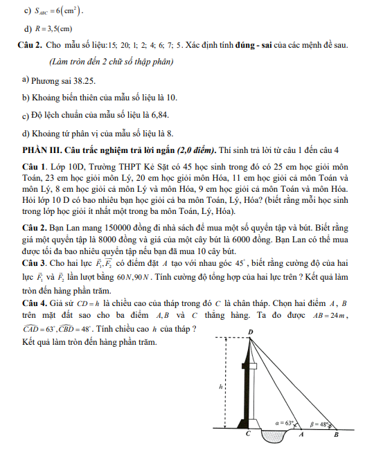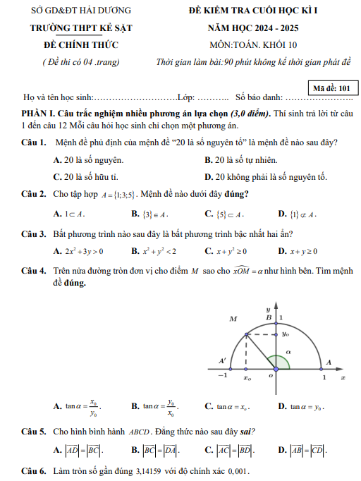 Đề cuối học kì 1 Toán 10 năm 2024 – 2025 trường THPT Kẻ Sặt – Hải Dương