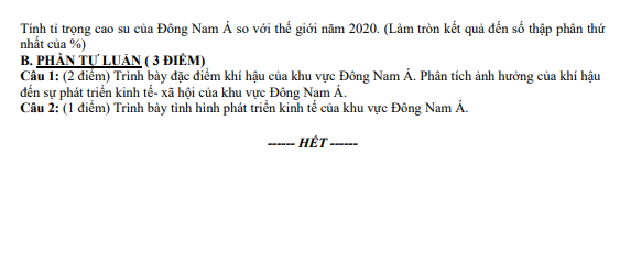Đề cuối học kỳ 1 Địa lí 11 năm 2024 – 2025 trường THPT Hồ Nghinh – Quảng Nam