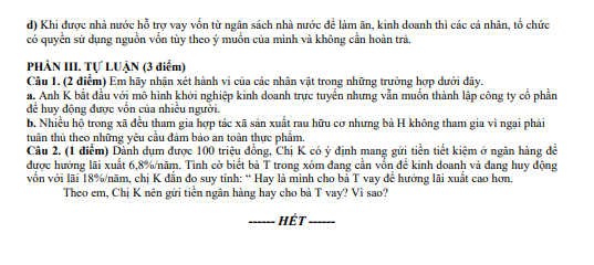 Đề Cuối Học Kỳ 1 GDKT&PL 10 là tài liệu quan trọng giúp học sinh lớp 10 làm quen với cấu trúc đề thi chính thức và rèn luyện kỹ năng làm bài trong thời gian quy định. Thông qua hệ thống bài luyện tập trên detracnghiem.edu.vn, học sinh được tiếp cận kho câu hỏi đa dạng, phân hóa theo mức độ nhận biết, thông hiểu và vận dụng, kèm theo đáp án và lời giải chi tiết. Việc luyện tập thường xuyên không chỉ giúp các em nắm vững lý thuyết mà còn nâng cao khả năng xử lý các tình huống kinh tế – pháp luật gắn với thực tiễn đời sống. Đây là nguồn tài liệu hữu ích cho quá trình ôn tập trước các kỳ đánh giá quan trọng Trắc nghiệm ôn tập lớp 10