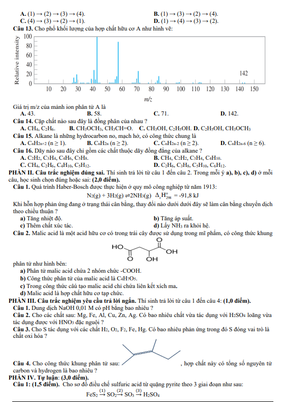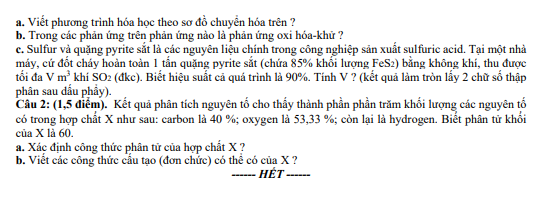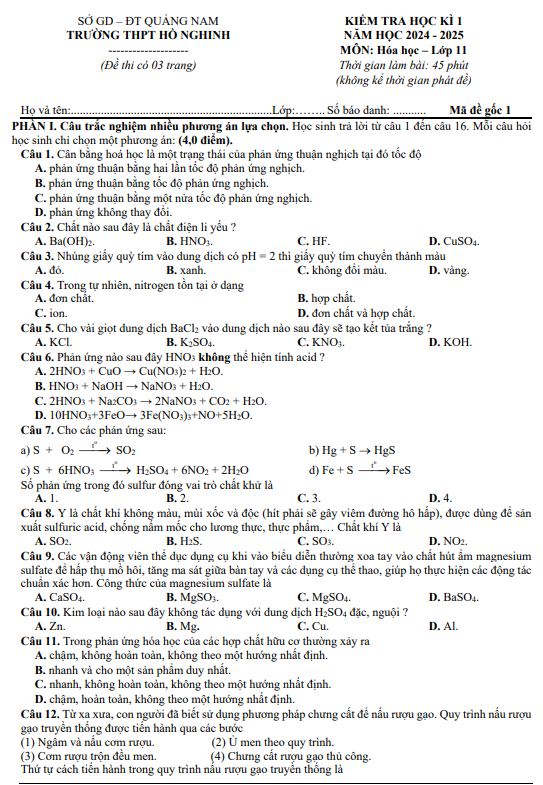 Đề cuối học kỳ 1 Hóa học 11 năm 2024 – 2025 trường THPT Hồ Nghinh – Quảng Nam
