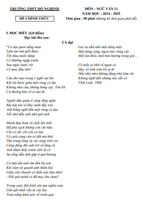 Đề cuối học kỳ 1 Ngữ Văn 11 năm 2024 – 2025 trường THPT Hồ Nghinh – Quảng Nam