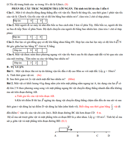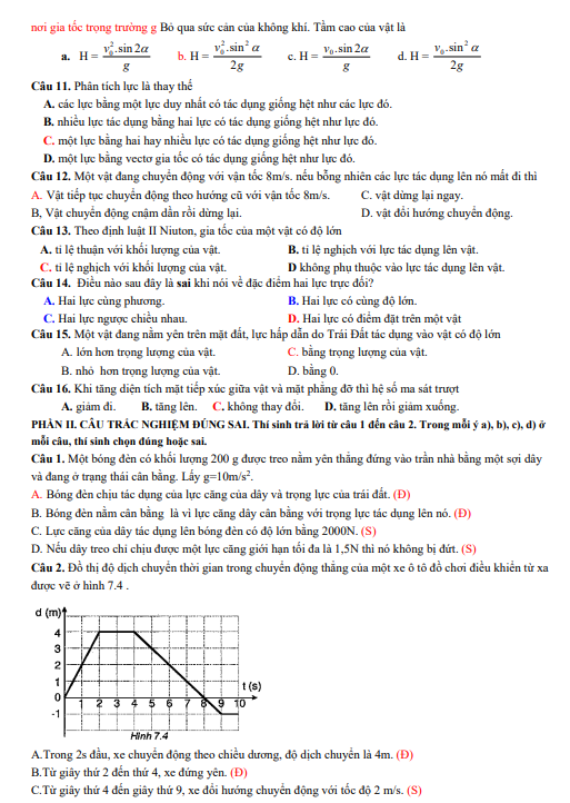 Đề Cuối Học Kỳ 1 Vật Lí 10 giữ vai trò quan trọng trong việc giúp học sinh làm quen với cấu trúc đề thi chính thức và rèn luyện kỹ năng phân tích hiện tượng, đọc – hiểu đồ thị cũng như giải bài tập theo đúng yêu cầu đánh giá năng lực. Khi kết hợp ôn tập cùng hệ thống tài liệu trên detracnghiem.edu.vn, học sinh có thể tiếp cận kho câu hỏi đa dạng, được phân hóa theo các mức độ nhận biết, thông hiểu và vận dụng, kèm đáp án và lời giải chi tiết. Việc luyện đề thường xuyên không chỉ giúp củng cố kiến thức lý thuyết mà còn nâng cao tư duy logic, khả năng vận dụng kiến thức vật lí vào thực tiễn, từ đó tạo sự tự tin trước các kỳ kiểm tra quan trọng Trắc nghiệm ôn tập lớp 10.