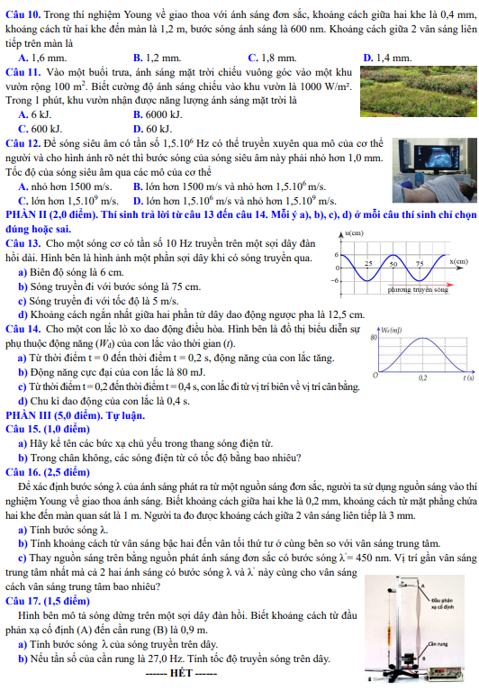 Đề cuối học kỳ 1 Vật lí 11 năm học 2024 – 2025 Sở GD&ĐT Bắc Ninh là bài kiểm tra định kì quan trọng của môn Vật lí, được xây dựng nhằm đánh giá mức độ nắm vững kiến thức và năng lực vận dụng của học sinh lớp 11 sau khi hoàn thành chương trình học kì I. Đây là đề thi Vật lí 11 do Sở GD&ĐT Bắc Ninh ban hành theo cấu trúc chung toàn tỉnh, với sự tham gia biên soạn của đội ngũ giáo viên cốt cán, tiêu biểu là thầy Nguyễn Văn Hưng – giáo viên Vật lí Trường THPT Hàn Thuyên (TP. Bắc Ninh). Nội dung đề tập trung vào các chuyên đề trọng tâm như dao động điều hòa, các đại lượng đặc trưng của dao động, con lắc lò xo, con lắc đơn và những bài toán vận dụng cơ bản theo chương trình Vật lí 11 học kì I. Đề thi đã được tổng hợp và đăng tải trên detracnghiem.edu.vn để hỗ trợ học sinh ôn tập hiệu quả.