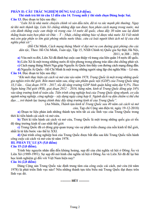 Đề Lịch sử 11 cuối học kỳ I này gồm cả phần trắc nghiệm và tự luận, giúp đánh giá toàn diện khả năng nhận biết sự kiện, phân tích nguyên nhân – kết quả, so sánh các phong trào lịch sử, cũng như vận dụng kiến thức vào giải thích hiện tượng thực tiễn. Khi ôn luyện qua detracnghiem.edu.vn, học sinh được hỗ trợ với đáp án chi tiết, dàn ý gợi ý và hệ thống câu hỏi phân theo chuyên đề, giúp quá trình học tập trở nên khoa học và dễ tiếp cận hơn. Đây là nguồn tài liệu tin cậy để chuẩn bị tốt cho kỳ kiểm tra quan trọng này Đề thi lớp 11.