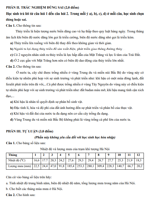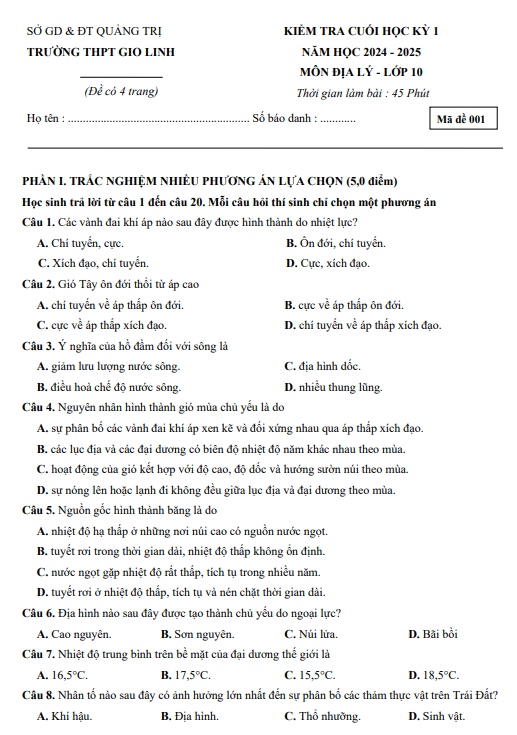 Đề cuối kì 1 Địa lí 10 năm 2024 – 2025 trường THPT Gio Linh – Quảng Trị