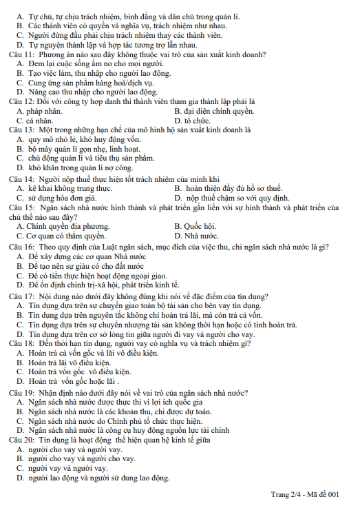 Đề Cuối Kì 1 GDKT&PL 10 đóng vai trò quan trọng trong quá trình giúp học sinh làm quen với cấu trúc đề thi chính thức và rèn luyện kỹ năng phân tích, vận dụng kiến thức vào thực tiễn. Thông qua hệ thống bài luyện tập trên detracnghiem.edu.vn, học sinh được tiếp cận kho câu hỏi đa dạng, phân hóa rõ ràng theo các mức độ nhận biết, thông hiểu và vận dụng, kèm đáp án và lời giải chi tiết. Việc ôn tập thường xuyên không chỉ giúp các em ghi nhớ kiến thức mà còn nâng cao tư duy kinh tế – pháp luật, từ đó tự tin hơn khi bước vào các kỳ đánh giá quan trọng trong năm học Trắc nghiệm ôn tập lớp 10.