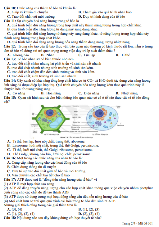 Đề Cuối Kì 1 Sinh Học 10 giữ vai trò quan trọng trong việc giúp học sinh làm quen với cấu trúc đề thi chính thức và rèn luyện kỹ năng ghi nhớ, phân tích cũng như vận dụng kiến thức sinh học theo chuẩn đánh giá mới. Khi kết hợp ôn tập cùng hệ thống tài liệu trên detracnghiem.edu.vn, học sinh được tiếp cận kho câu hỏi phong phú, phân hóa theo các mức độ nhận biết, thông hiểu và vận dụng, kèm đáp án và giải thích chi tiết. Việc luyện đề thường xuyên không chỉ giúp củng cố kiến thức lý thuyết mà còn phát triển tư duy khoa học, khả năng liên hệ thực tiễn sinh học, từ đó tạo sự tự tin trước các kỳ kiểm tra quan trọng trong năm học Trắc nghiệm ôn tập lớp 10.