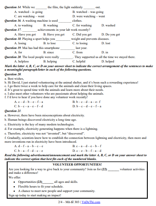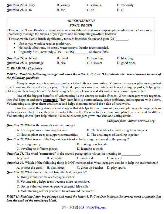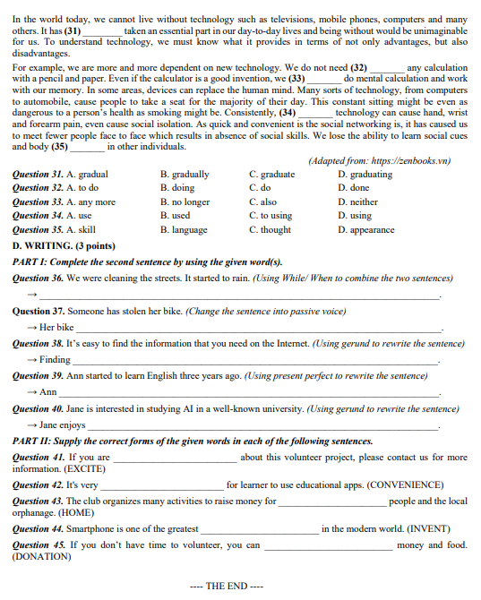 Đề Cuối Kì 1 Tiếng Anh 10 giữ vai trò quan trọng trong việc giúp học sinh làm quen với cấu trúc đề thi chính thức và rèn luyện kỹ năng làm bài theo đúng chuẩn đánh giá năng lực. Khi kết hợp ôn tập cùng hệ thống tài liệu trên detracnghiem.edu.vn, học sinh có cơ hội tiếp cận kho bài tập phong phú, đa dạng dạng câu hỏi, có đáp án và lời giải chi tiết. Việc luyện tập thường xuyên không chỉ giúp củng cố kiến thức ngữ pháp, mở rộng vốn từ vựng mà còn nâng cao khả năng vận dụng tiếng Anh trong các tình huống thực tế, từ đó tạo sự tự tin trước các kỳ kiểm tra quan trọng trong năm học Trắc nghiệm ôn tập lớp 10.