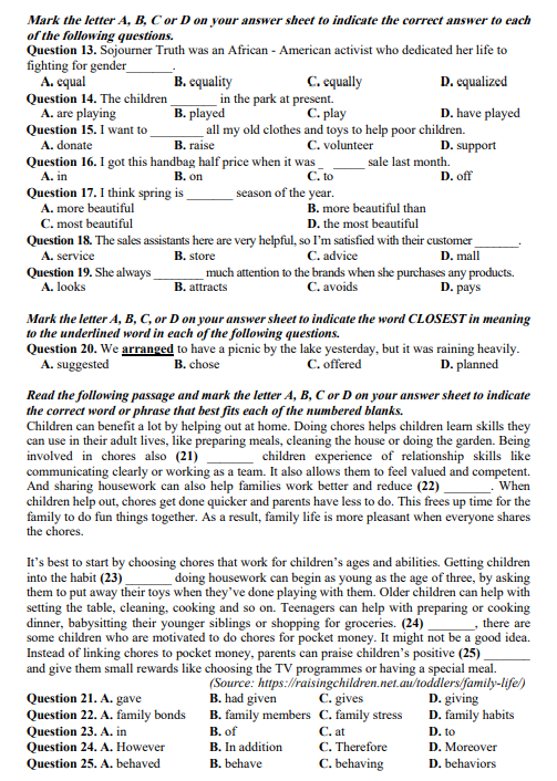 Đề Cuối Kì 1 Tiếng Anh 10 đóng vai trò quan trọng trong việc giúp học sinh làm quen với cấu trúc đề thi chính thức và rèn luyện kỹ năng làm bài theo đúng chuẩn đánh giá năng lực ngoại ngữ. Khi kết hợp ôn tập cùng hệ thống tài liệu trên detracnghiem.edu.vn, học sinh có thể tiếp cận kho bài tập đa dạng, bám sát định hướng ra đề của nhà trường, kèm đáp án và lời giải chi tiết. Việc luyện tập thường xuyên không chỉ giúp củng cố kiến thức ngữ pháp, mở rộng vốn từ vựng mà còn nâng cao khả năng vận dụng tiếng Anh trong các tình huống giao tiếp thực tế, từ đó tự tin hơn khi bước vào kỳ thi cuối học kì Trắc nghiệm ôn tập lớp 10.