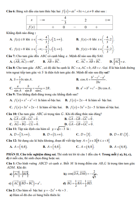 Đề cuối kì 1 Toán 10 năm 2024 – 2025 trường THPT Lê Hồng Phong – Đắk Lắk