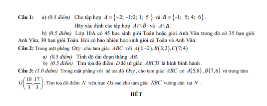 Đề cuối kì 1 Toán 10 năm 2024 – 2025 trường THPT Nguyễn Huệ – Quảng Nam