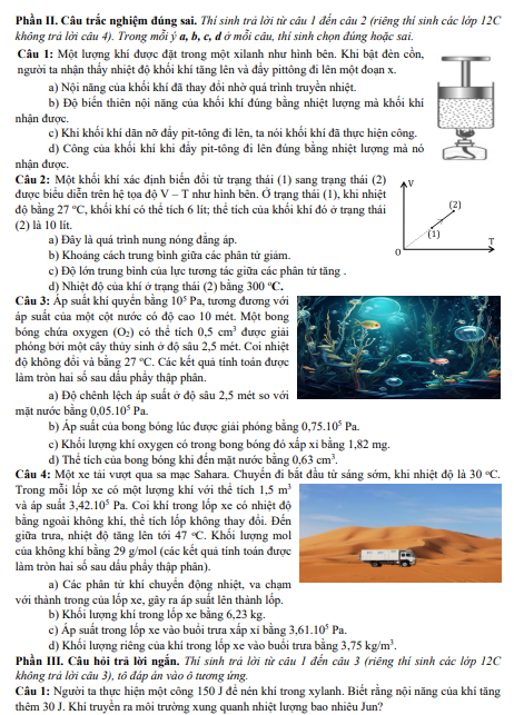 Đề Vật lí 12 cuối kì I của trường THPT Gio Linh được thiết kế chủ yếu theo hình thức trắc nghiệm (kết hợp tự luận nếu có), giúp đánh giá toàn diện các mức độ nhận biết, thông hiểu và vận dụng kiến thức. Khi luyện tập qua detracnghiem.edu.vn, học sinh được cung cấp đáp án chi tiết, lời giải từng bước, phân tích phương pháp làm bài nhanh và hệ thống câu hỏi phân theo mức độ từ cơ bản đến vận dụng cao. Đây là nguồn tài liệu hữu ích giúp học sinh lớp 12 củng cố kiến thức, rèn kỹ năng giải bài tập và tự tin chuẩn bị cho các kỳ kiểm tra học kì cũng như kỳ thi tốt nghiệp THPT Đề thi lớp 12.