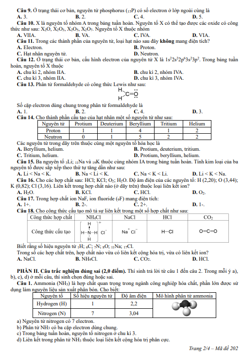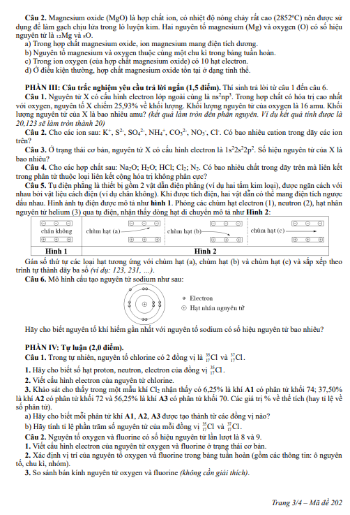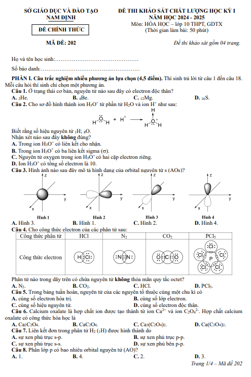 Đề học kỳ 1 Hóa học 10 năm học 2024 – 2025 sở GD&ĐT Nam Định