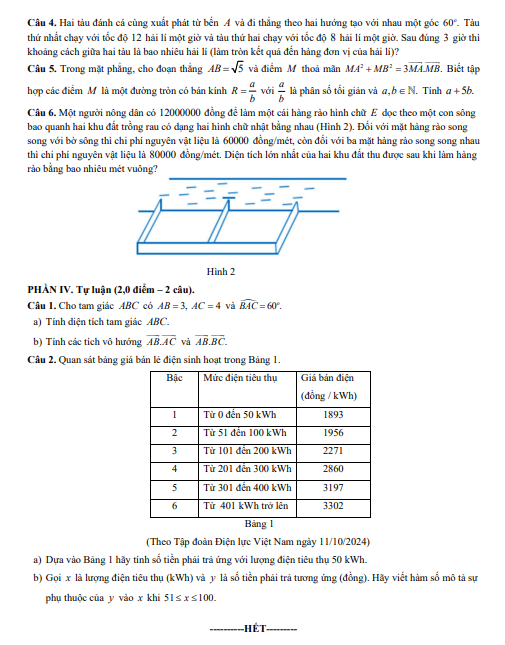 Đề học kỳ 1 Toán 10 năm học 2024 – 2025 sở GD&ĐT Nam Định