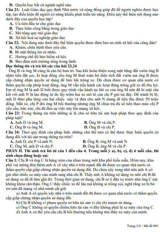 Trắc nghiệm môn KTPL 12 trong đề giữa kì 2 đóng vai trò quan trọng trong việc giúp học sinh làm quen với cấu trúc đề thi chính thức và rèn luyện kỹ năng phân tích, xử lý tình huống pháp luật. Khi ôn luyện đề thi này trên nền tảng detracnghiem.edu.vn, học sinh có thể thực hành làm bài trực tuyến, kiểm tra đáp án ngay sau khi hoàn thành và theo dõi tiến độ học tập của bản thân. Đề thi không chỉ hỗ trợ ôn tập hiệu quả các nội dung trọng tâm mà còn nâng cao khả năng vận dụng kiến thức GDKT&PL vào thực tiễn đời sống. Đây là tài liệu tham khảo hữu ích cho học sinh lớp 12 trong quá trình chuẩn bị cho bài kiểm tra học kì, đặc biệt là Trắc nghiệm ôn tập lớp 12.