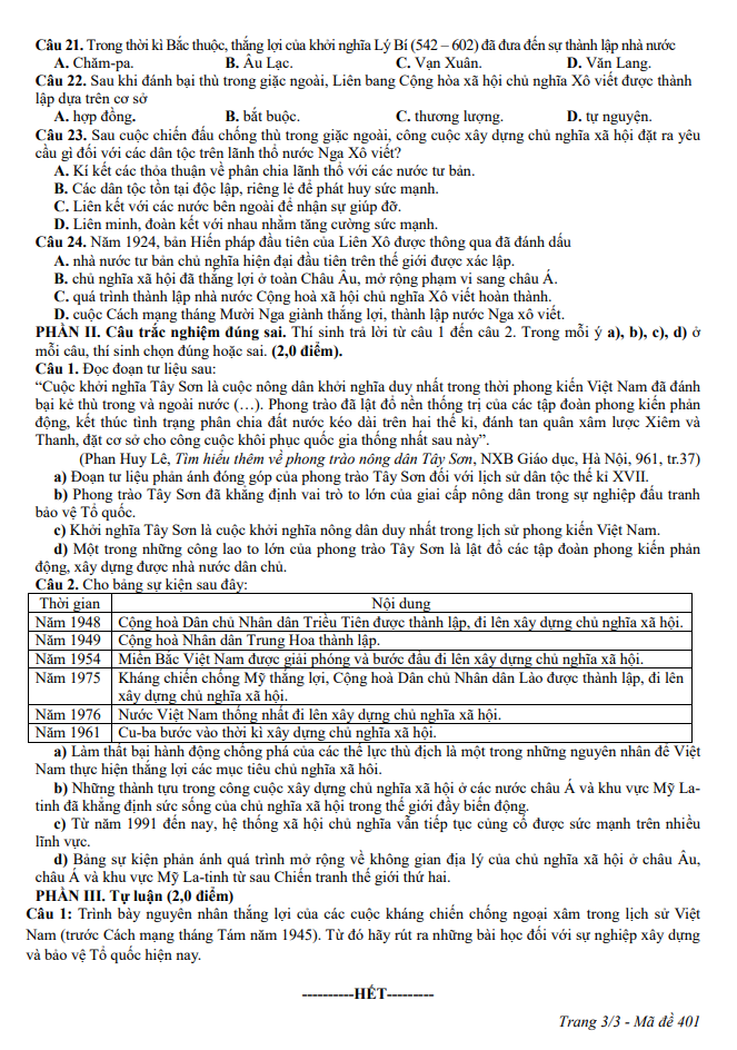 Đề thi học kỳ 2 Lịch sử 11 năm 2024 – 2025 sở GDĐT Nam Định Có Đáp Án