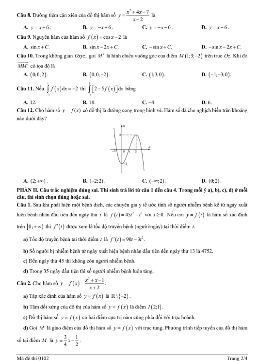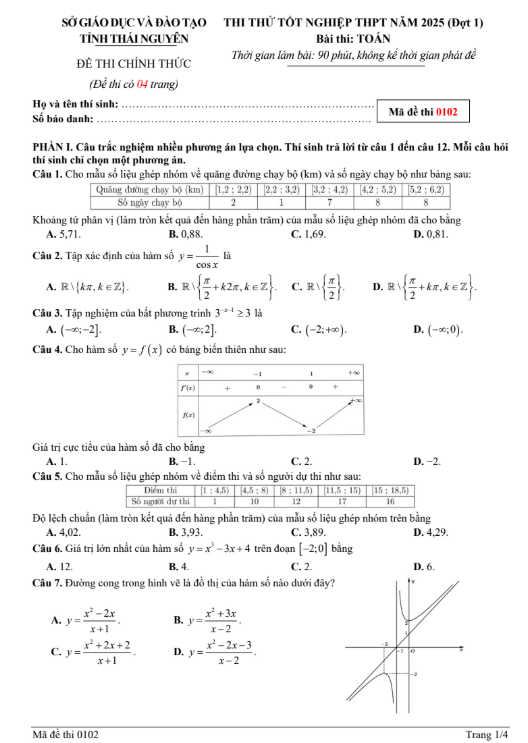 Đề thi thử đại học 2025 môn Toán Sở GD&ĐT Thái Nguyên lần 1 Mã 0102