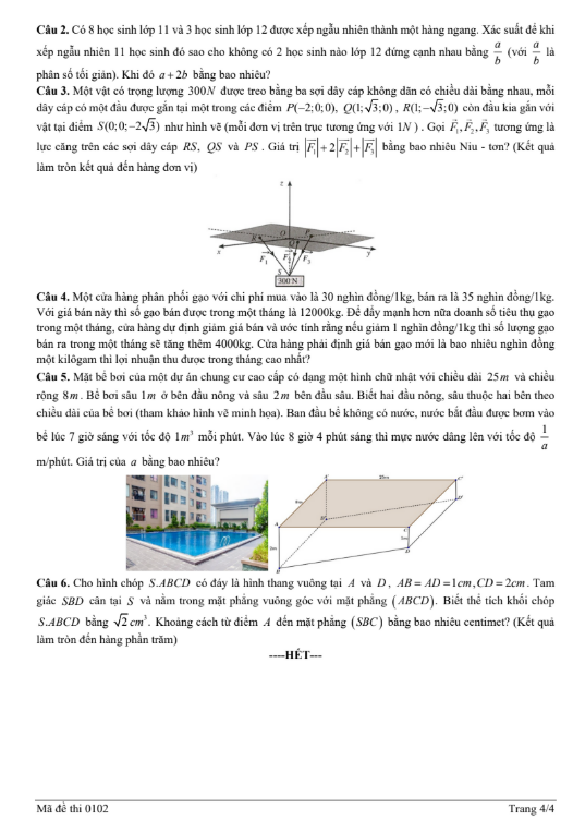 Trong khuôn khổ chương trình ôn luyện cho kỳ thi đại học năm 2025, Sở GD&ĐT Thái Nguyên đã tiếp tục công bố đề thi thử môn Toán – lần 1 (Mã đề 0102), nhằm giúp học sinh lớp 12 làm quen sớm với cấu trúc đề thi, dạng câu hỏi và mức độ phân hóa theo định hướng ra đề hiện hành. Đây là tài liệu luyện tập quan trọng, hỗ trợ học sinh tự đánh giá năng lực, điều chỉnh chiến lược học tập và cải thiện kỹ năng làm bài trong giai đoạn tăng tốc.