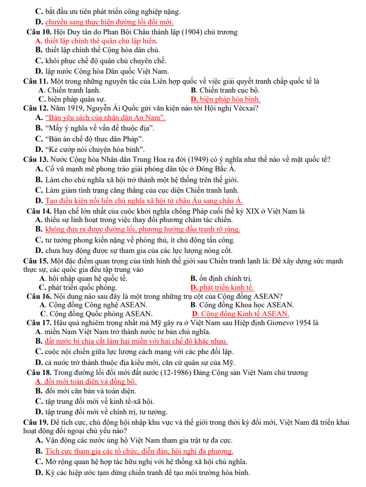 Đề thi được biên soạn bám sát định hướng của Bộ GD&ĐT, bao gồm các chủ đề trọng tâm: lịch sử Việt Nam hiện đại, phong trào cách mạng, hai cuộc kháng chiến, công cuộc xây dựng và phát triển đất nước, cùng những sự kiện quan trọng trên thế giới. Bộ câu hỏi được phân hóa theo nhiều cấp độ, hỗ trợ học sinh rèn luyện tư duy phân tích, khả năng đọc hiểu tư liệu và nâng cao hiệu quả làm bài trong giai đoạn chuẩn bị cho kỳ thi THPT năm 2025.