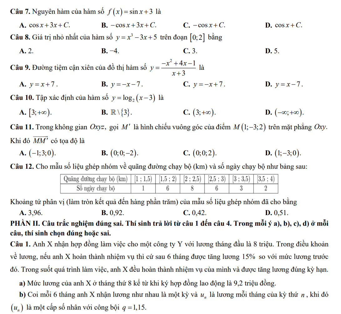 Đề thi được biên soạn bám sát theo cấu trúc của Bộ GD&ĐT, bao gồm đầy đủ các chuyên đề trọng tâm như: hàm số, mũ – logarit, nguyên hàm – tích phân, hình học không gian, số phức, xác suất – thống kê và các bài toán vận dụng thực tiễn. Hệ thống câu hỏi được phân hóa rõ ràng, giúp học sinh rèn luyện tư duy và nâng cao kỹ năng giải toán ở nhiều mức độ.