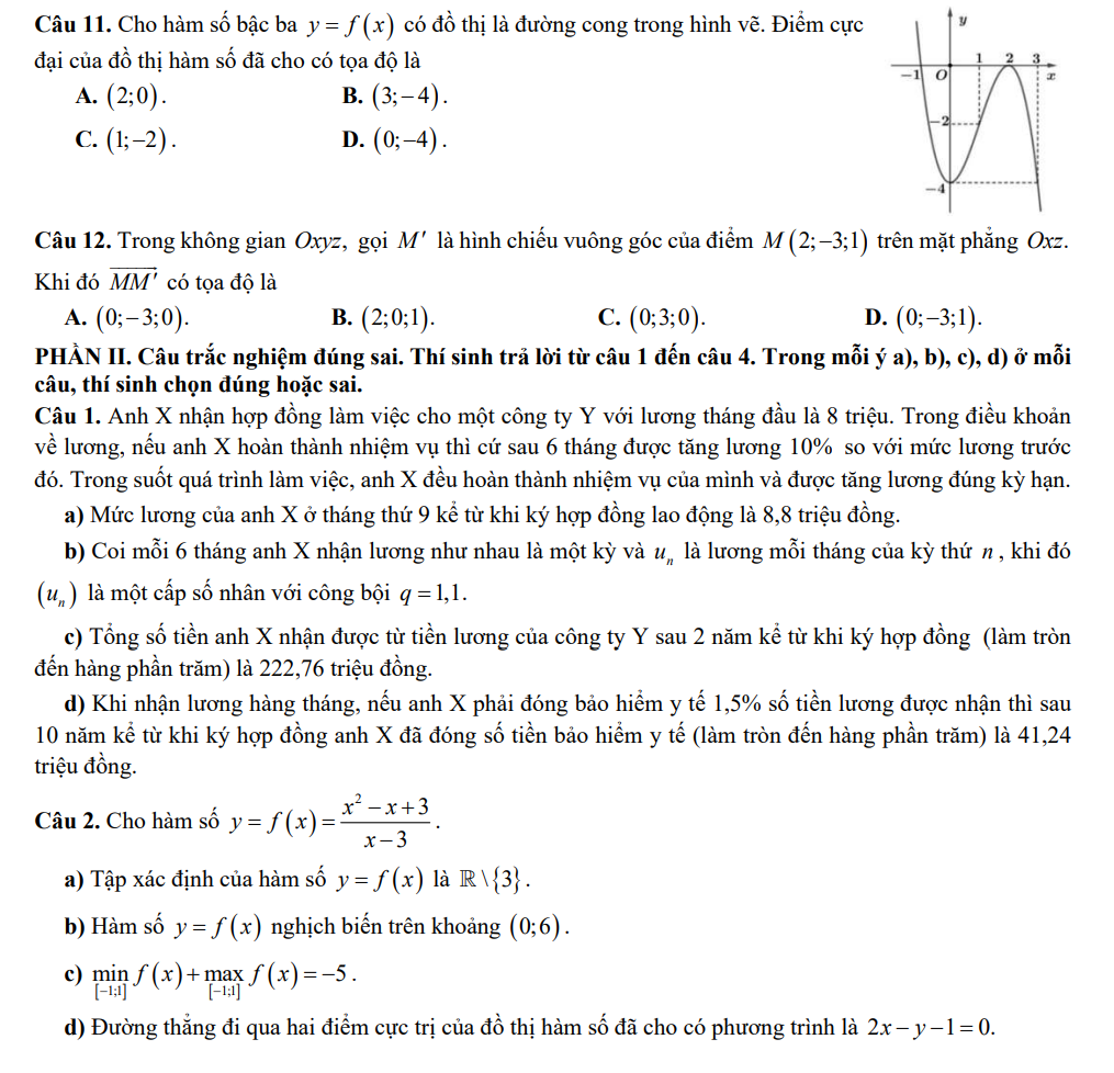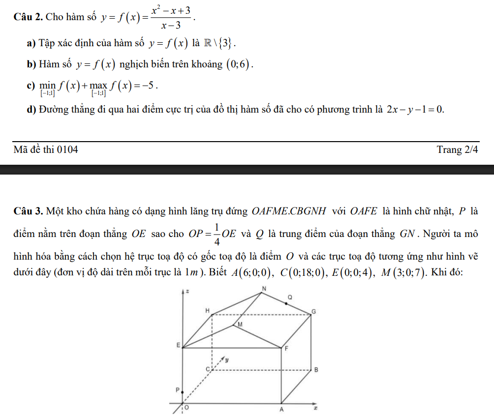 Đề thi thử tốt nghiệp THPT 2025 môn Toán đợt 1 sở GD&ĐT Thái Nguyên mã 0104 Có Đáp Án