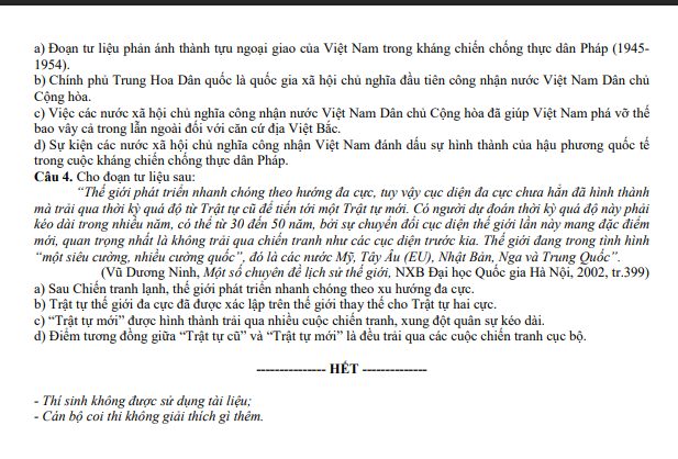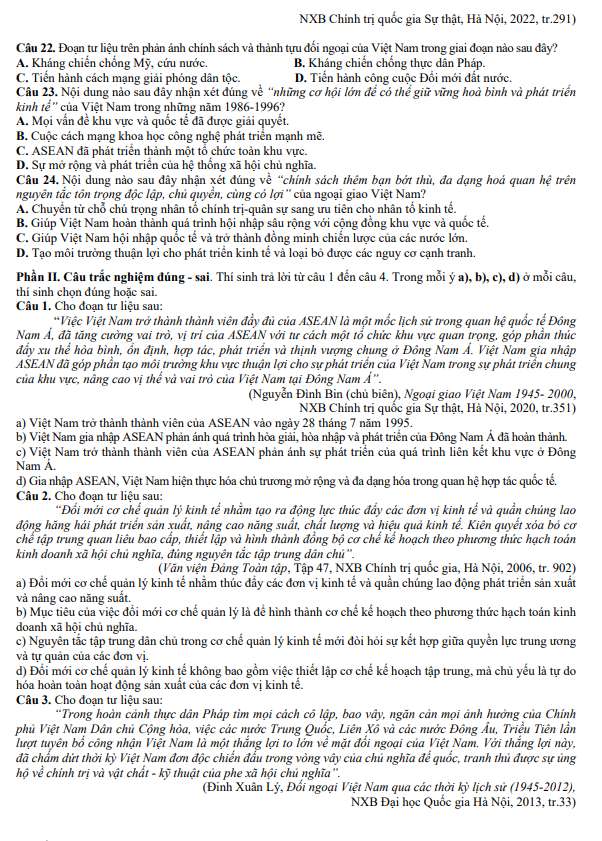 Đề thi được biên soạn bám sát cấu trúc và định hướng của Bộ GD&ĐT, bao gồm những chuyên đề trọng tâm của lịch sử Việt Nam và lịch sử thế giới hiện đại như: các cuộc cách mạng, hai cuộc kháng chiến, tiến trình xây dựng – bảo vệ Tổ quốc, cùng những sự kiện mang tính bước ngoặt trên phạm vi quốc tế. Hệ thống câu hỏi được phân hóa theo nhiều mức độ, giúp học sinh rèn luyện khả năng phân tích – tổng hợp và cải thiện hiệu quả làm bài trong quá trình ôn tập.