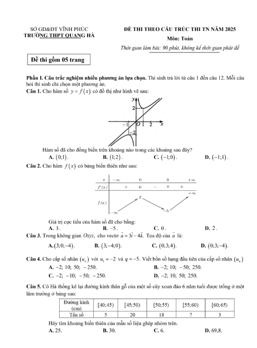 Đề thi thử tốt nghiệp THPT năm 2025 môn Toán sở GD&ĐT Vĩnh Phúc – Trường THPT Quang Hà