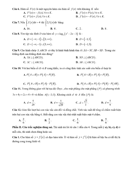 Đề thi bao gồm đầy đủ các chuyên đề trọng tâm như hàm số, mũ – logarit, nguyên hàm – tích phân, hình học không gian, số phức, xác suất – thống kê… Câu hỏi được sắp xếp từ mức độ cơ bản đến vận dụng cao, giúp học sinh vừa củng cố nền tảng kiến thức, vừa phát triển tư duy và khả năng giải quyết vấn đề trong điều kiện thời gian hạn chế.