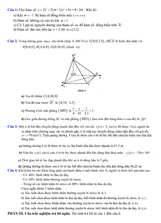 Đề thi bao gồm đầy đủ các chuyên đề trọng tâm như hàm số, mũ – logarit, nguyên hàm – tích phân, hình học không gian, số phức, xác suất – thống kê… với hệ thống câu hỏi được phân bố theo mức độ từ cơ bản đến vận dụng cao. Nhờ đó, học sinh vừa củng cố nền tảng kiến thức, vừa rèn luyện khả năng phân tích, tư duy logic và tốc độ xử lý bài toán trong điều kiện thời gian hạn chế.