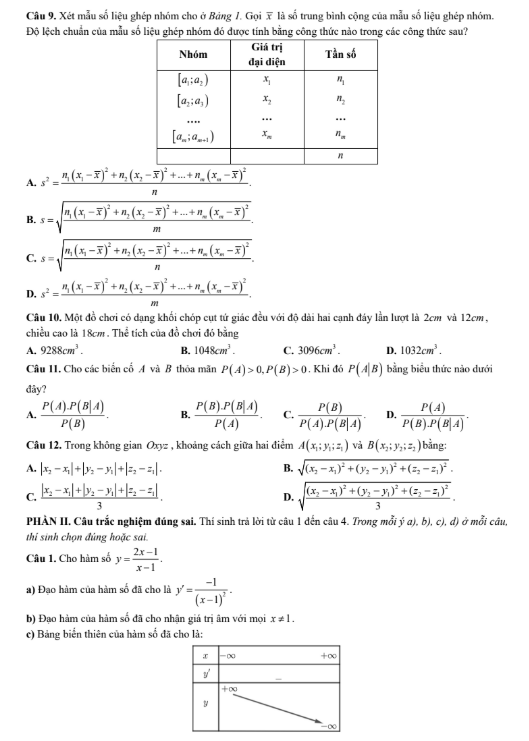 Đề thi bao gồm đầy đủ các chuyên đề trọng tâm: hàm số, mũ – logarit, nguyên hàm – tích phân, hình học không gian, số phức, xác suất – thống kê… Các câu hỏi được phân chia theo mức độ từ cơ bản đến vận dụng cao, giúp học sinh củng cố nền tảng kiến thức, rèn luyện tư duy logic và nâng cao tốc độ xử lý bài toán dưới áp lực thời gian.