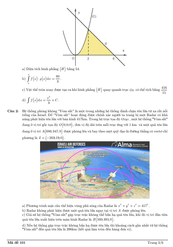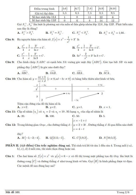 Đề thi bao gồm các chuyên đề trọng tâm như hàm số, mũ – logarit, nguyên hàm – tích phân, hình học không gian, số phức, xác suất – thống kê… Hệ thống câu hỏi được phân hóa từ cơ bản đến vận dụng cao, giúp học sinh củng cố kiến thức nền tảng, phát triển tư duy phân tích và nâng cao tốc độ xử lý bài toán dưới áp lực thời gian.