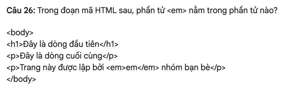 Câu 19: Phát biểu nào sau đây là đúng về việc sử dụng thẻ em và i?