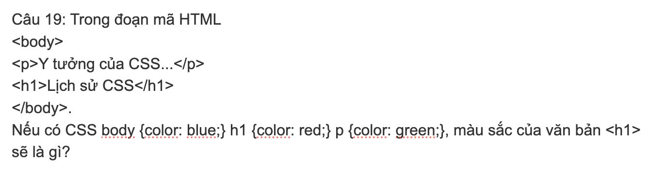 được định dạng màu đỏ (color: red;), thì chữ trong sẽ có màu gì?