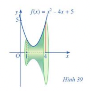 Câu 28: Cho khối tròn xoay Hình 39. Hình phẳng được giới hạn bởi các đường nào để khi quay quanh trục $Ox$ ta được khối tròn xoay như Hình 39?